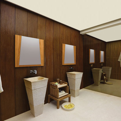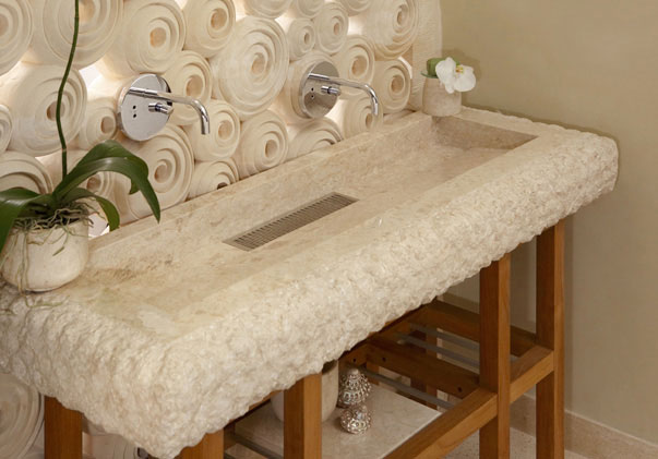 Z izdelki iz naravnega kamna lahko v svoji kopalnici ustvarite oazo miru, kraj za sprostitev in dobro počutje. V njih so združeni lepota, izvirnost, preprostost, grobost skale in mehkoba rečnega kamna, ki v dotiku z vodo ustvarjajo posebno energijo.